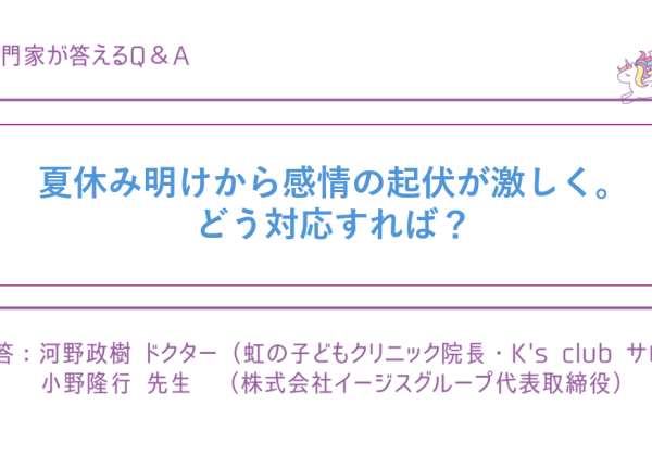 専門医Q&A 夏休み明けから感情の起伏が激しく。どのように対応すれば? 夏休み明けから感情の起伏が激しく。どのように対応すれば? 「K’s club サロン」は、発達外来クリ... 2025.10.06